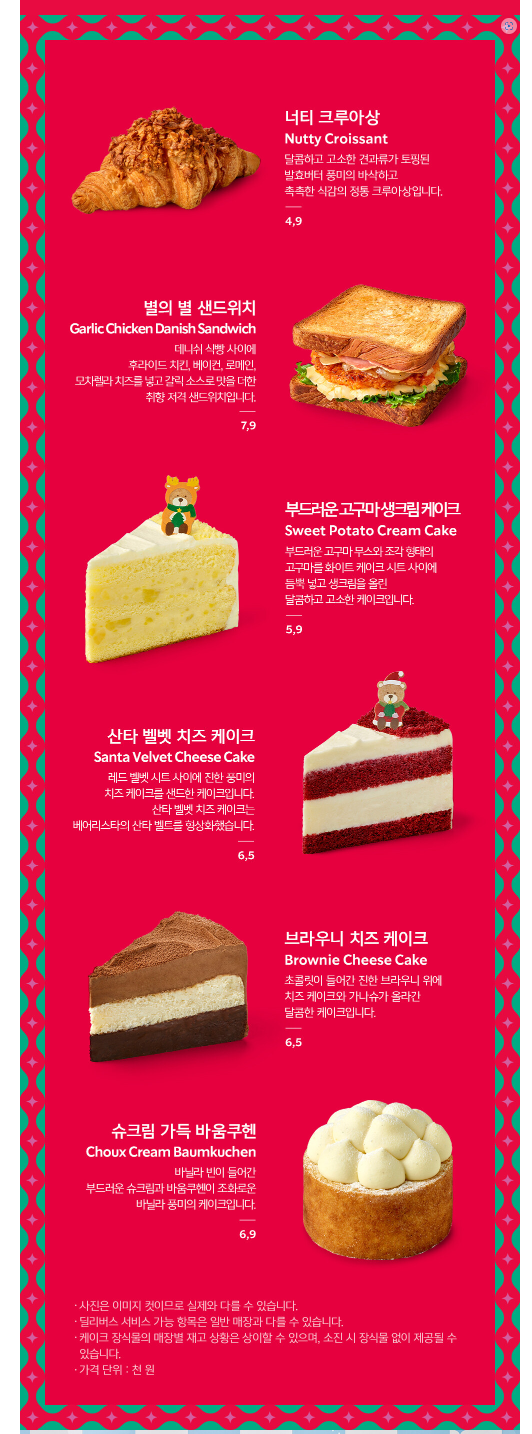 크리스마스 시즌 케익이라고 하기엔 기존에 있던 제품들과 별 다를게 없는 케익들입니다.