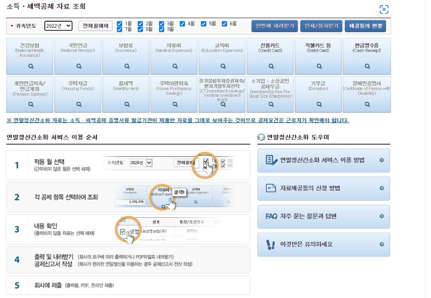 연말정산 간소화 서비스를 이용할 수 있습니다.