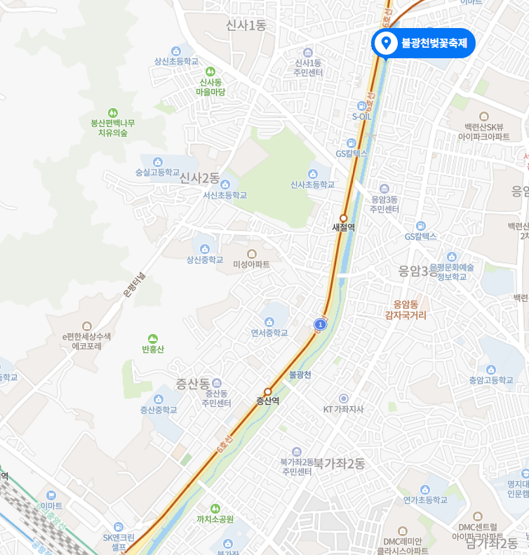 응암역부터 월드컵 경기장역까지 불광천을 따라