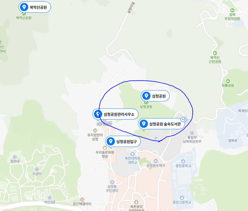 삼청공원에서 북악산 공원까지 이어지는 등산루트를 이용하시는 것도 좋구요.