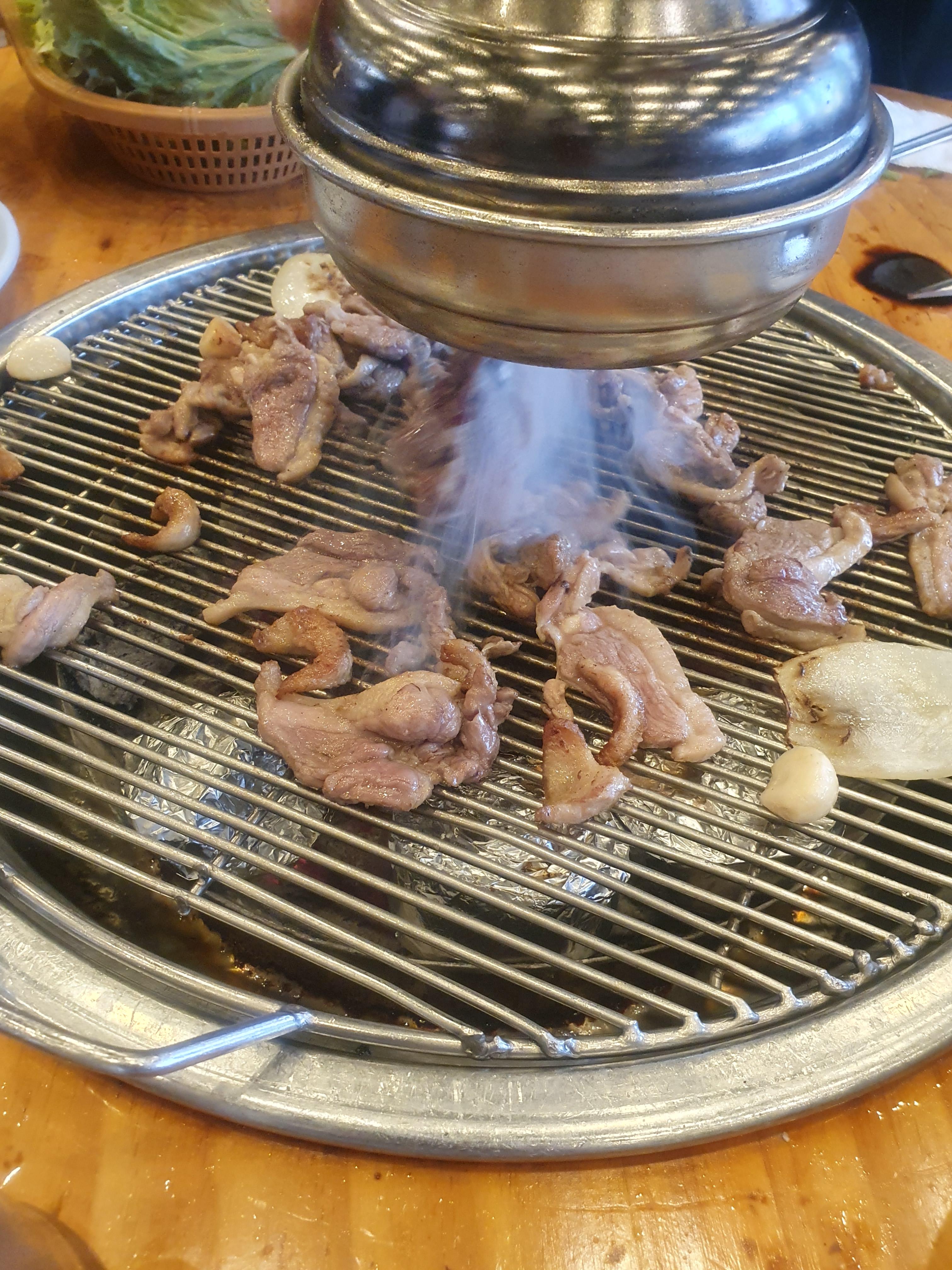 오리고기 주문하시면 자동적으로 숯불위에 군고구마도 놓아줍니다.