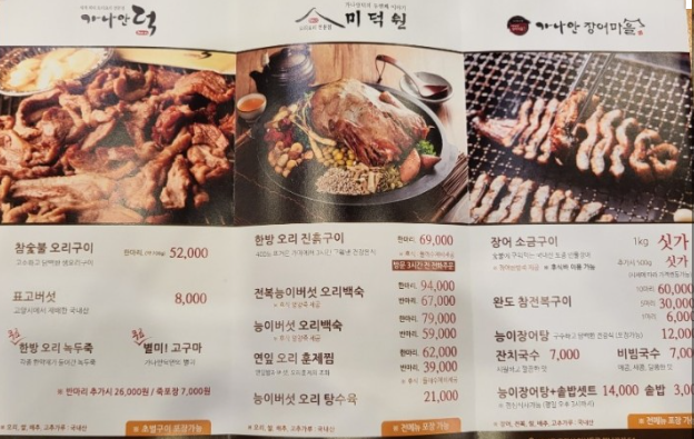 가나안덕 오리고기 메뉴
