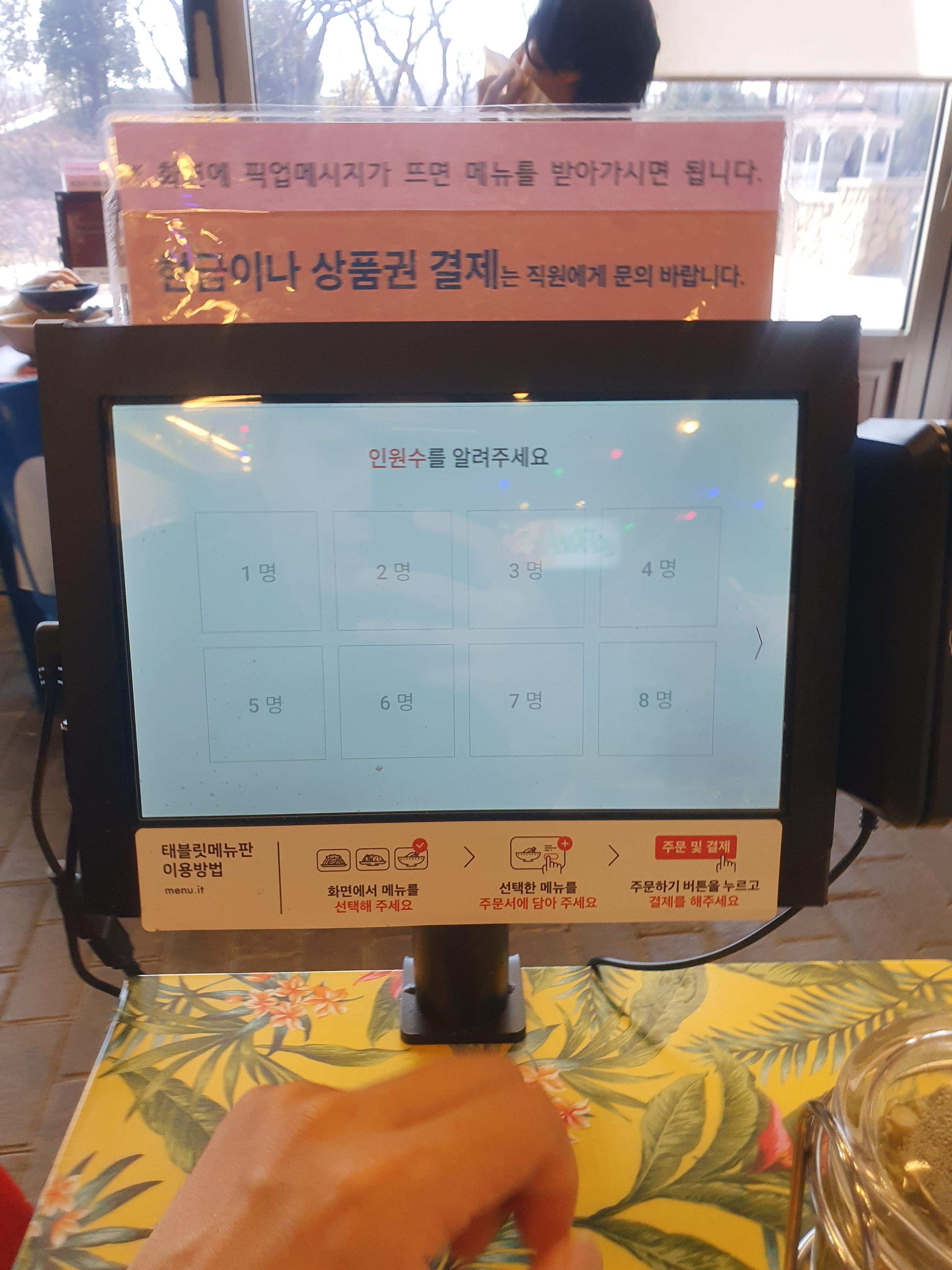 화면을 터치해서 주문을 하면 됩니다.