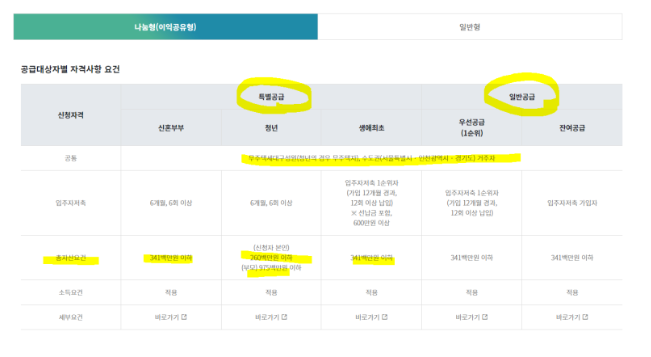 나눔형 특별공급과 일반공급의 자격조건이 다양하니