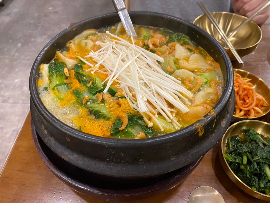 털래기는 수제비와 각종 야채를 넣고 끓인