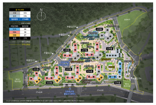 재개발 정비사업으로 총 761세대이며 조합원을 제외한 일반 물량