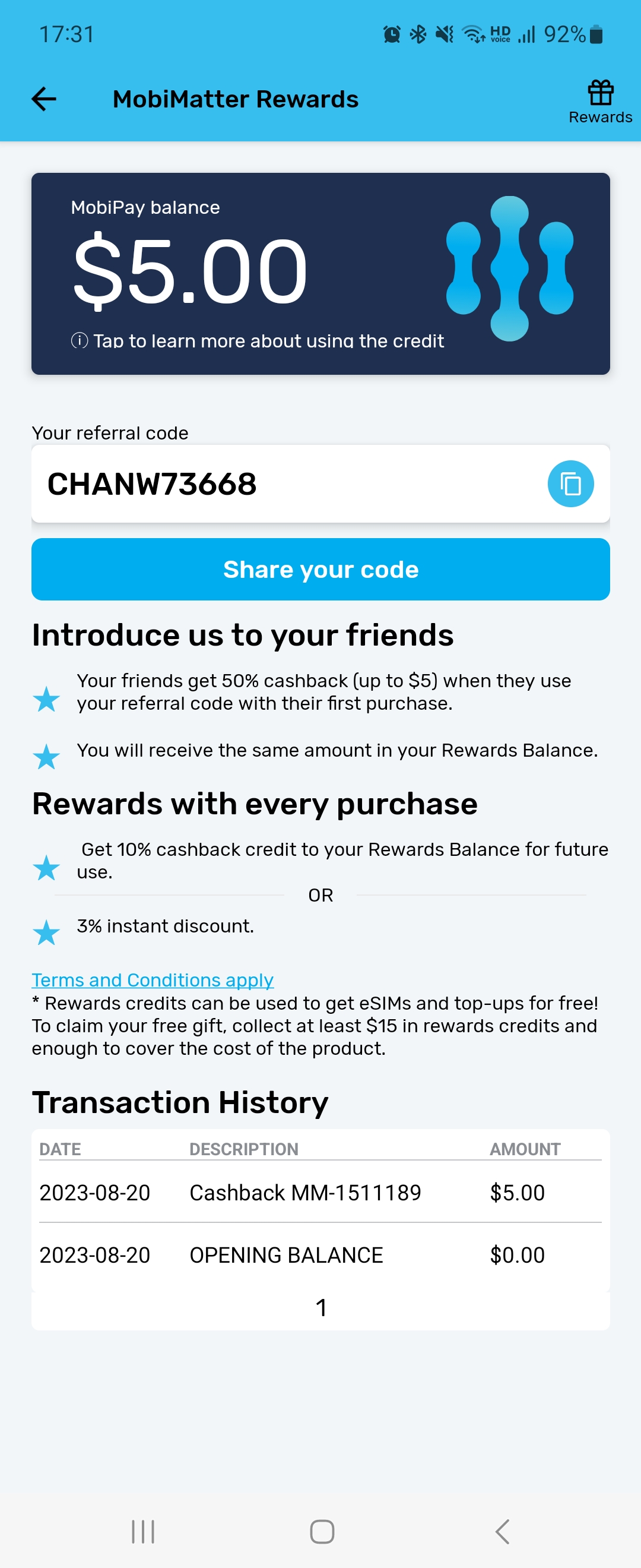 저도 친구코드를 입력해서 5불을 받았네요 :)