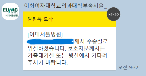 방송에서 산모이름이 불리고 보호자 수술실 앞으로 나오라고 했어요.