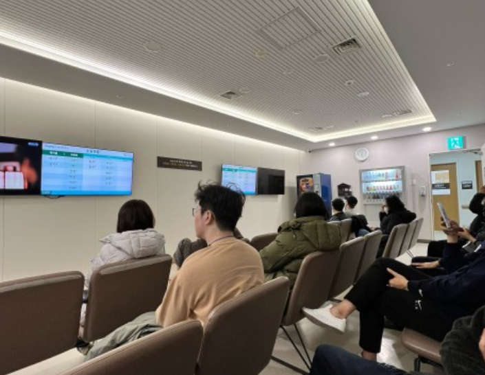 TV를 보며 쉬고 있다가 옆에 전광판으로 대기실/수술실/회복실 등 상태를 볼 수 있어요.