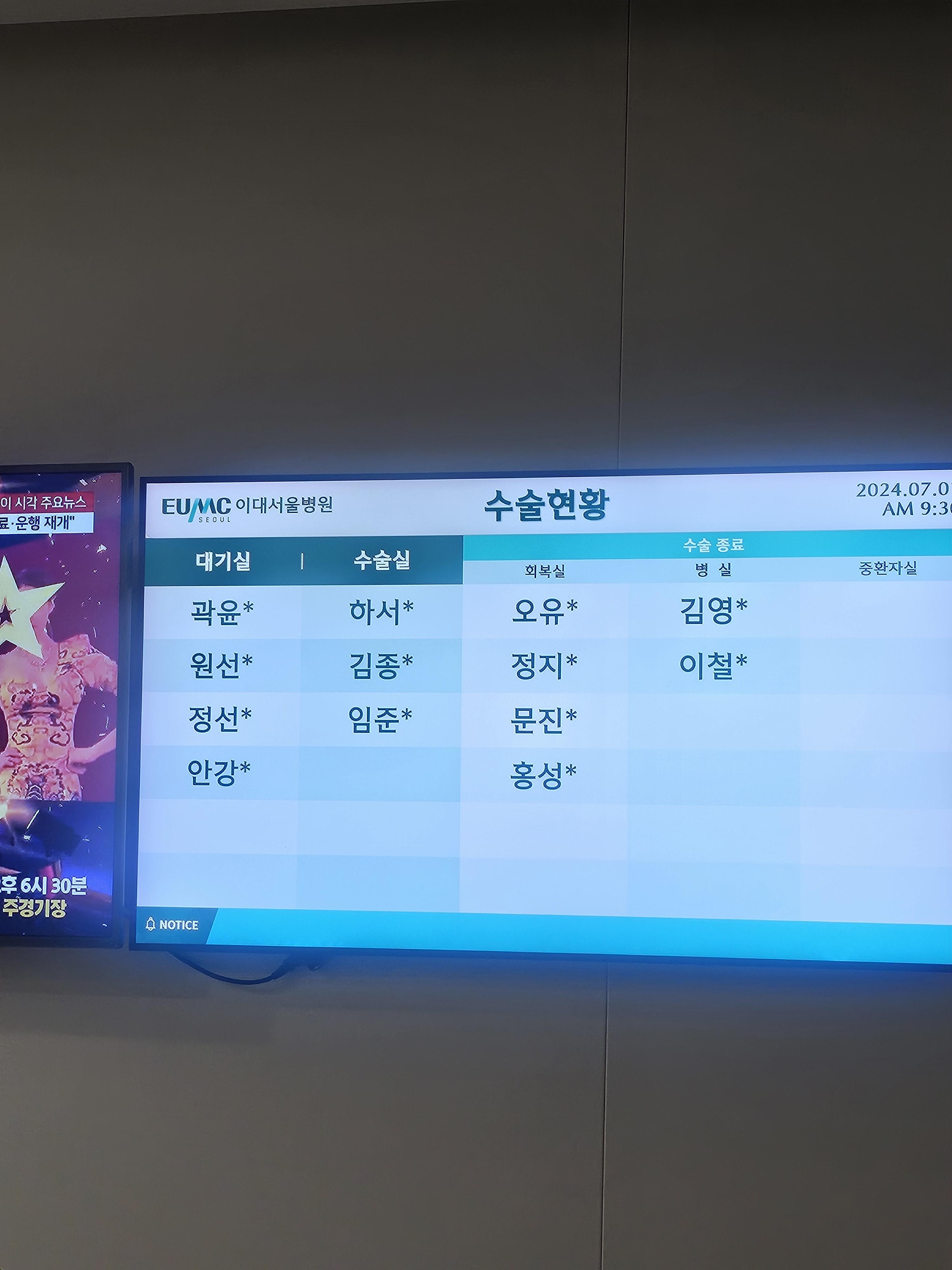 수술현황에서도 30분정도 대기실에 이름이 있다가