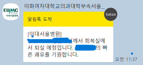 다행히 올라가서 1인실이 여유있어서 병실을 옮길 수 있었어요.