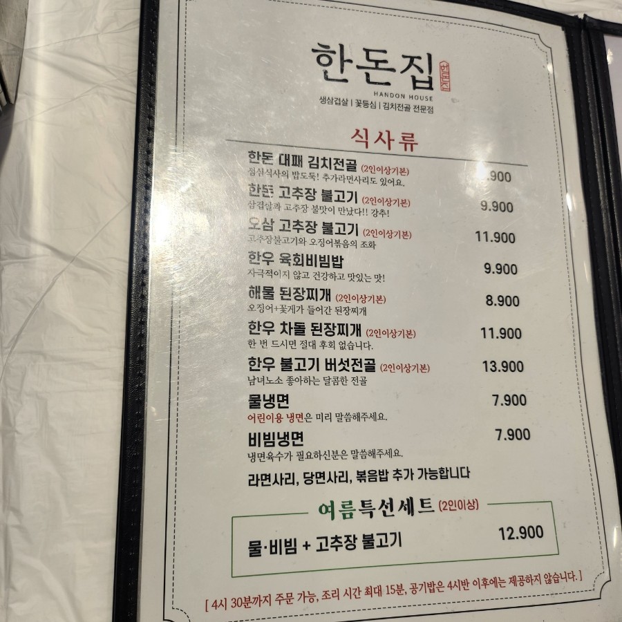 한돈집 메뉴
