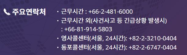 아래는 주태국 한국 대사관 연락처입니다.