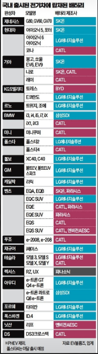 기아차 또한 SK온과 CATL을 사용하네요.