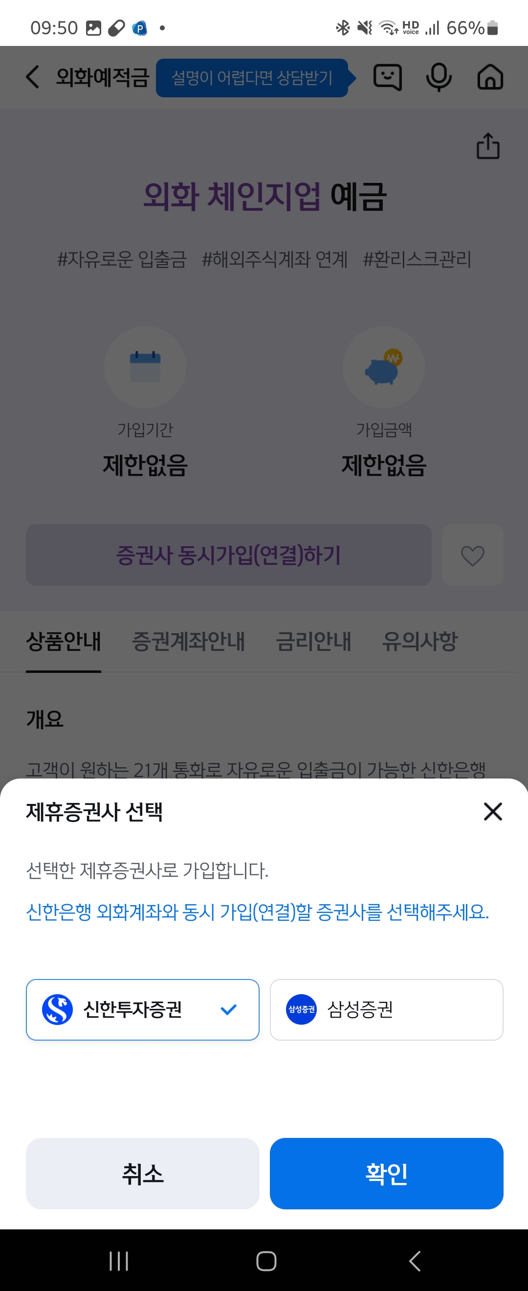 그러면 신한 체인지업 계좌와 제휴중인 증권사가 나오는데요.