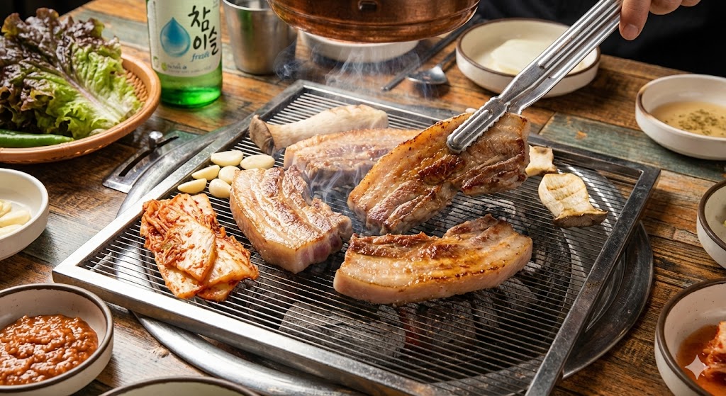 - 반드시 채소랑 같이 먹기: 쌈무, 파절이, 상추 잔뜩 싸서 드세요. 식이섬유가 지방 흡수를 막아줍니다.