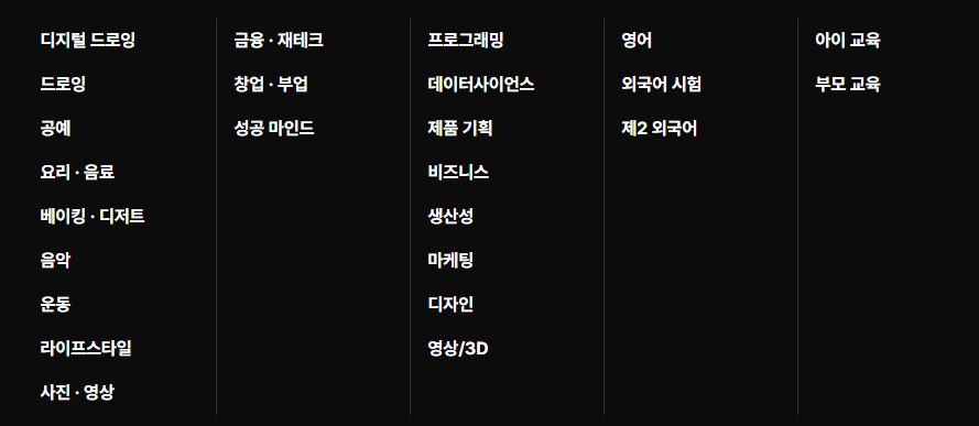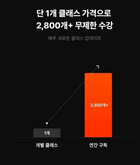 예전에는 강의를 개별로 신청해서 들었는데 이번에 진행하는 구독서비스는 월 저렴한 금액을 지불하면 무제한으로 듣고 싶은 강의를 다 들을 수 있습니다.