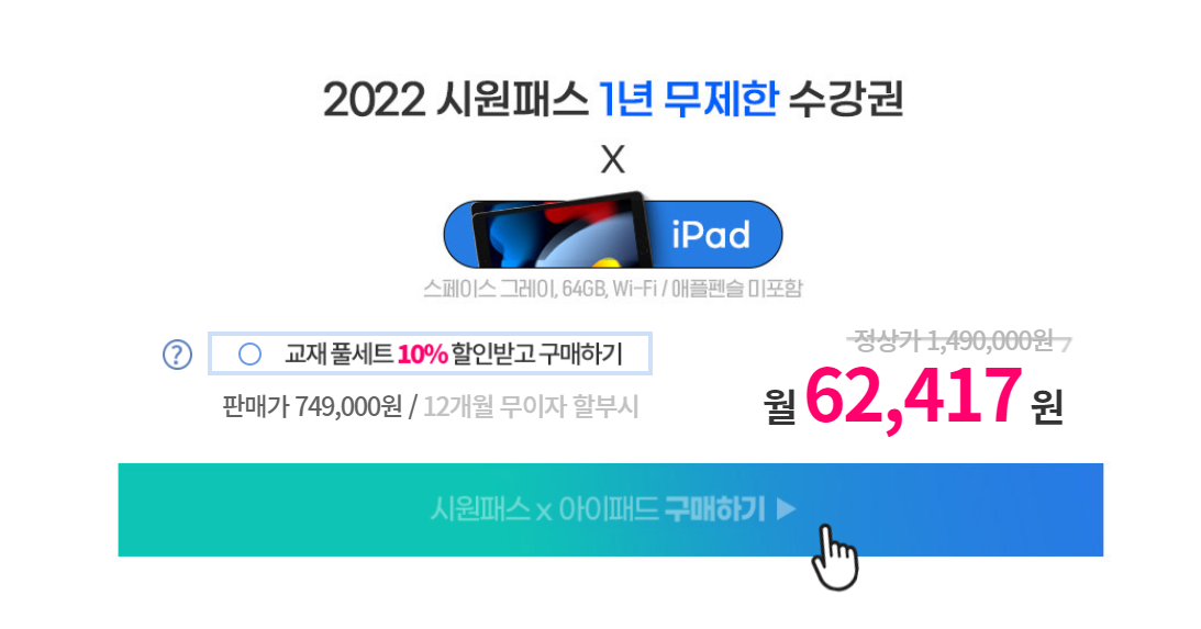 1년 수강권에 아이패드 64GB 와이파이 제품의 경우
