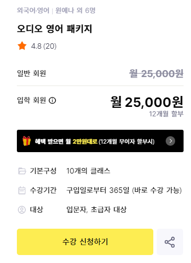 월 약 3만원 수준으로 1년동안 들을 수 있네요.