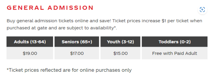 온라인에서 구매하면 어른은 19불에 구매하실 수 있어요.(Tax 불포함)