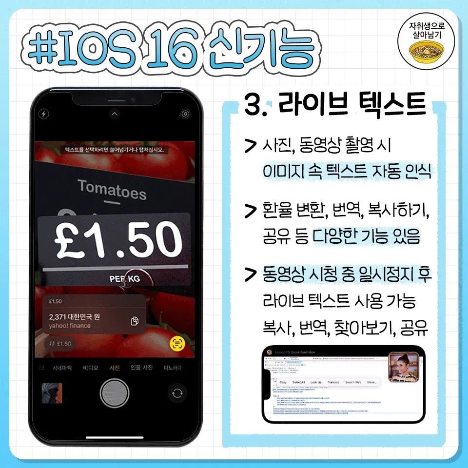 ※ 3. 라이브 텍스트 : 사진, 동영상 촬영 시 이미지 속 텍스트 자동인식
