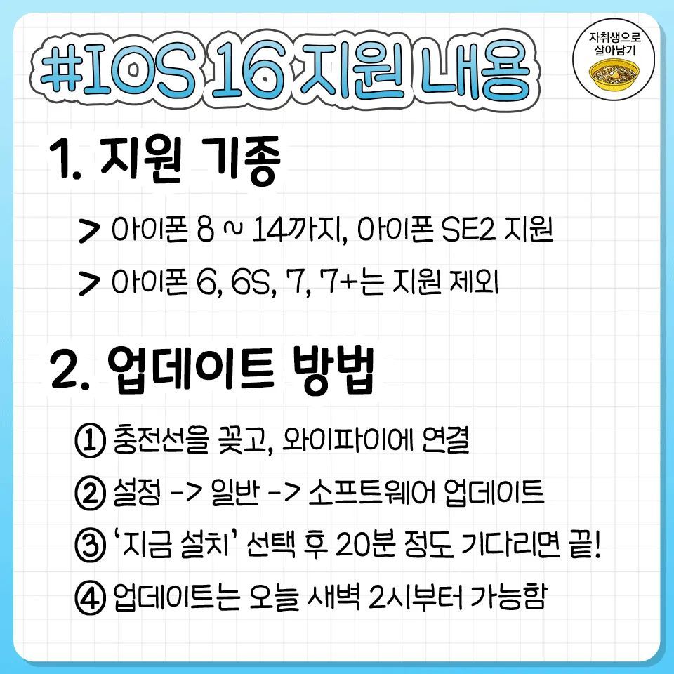 아직 하지 못하신 분들과 이미 하신분들을 위해 이번 iOS 16 업데이트관련 내용 정리해보도록 하겠습니다.