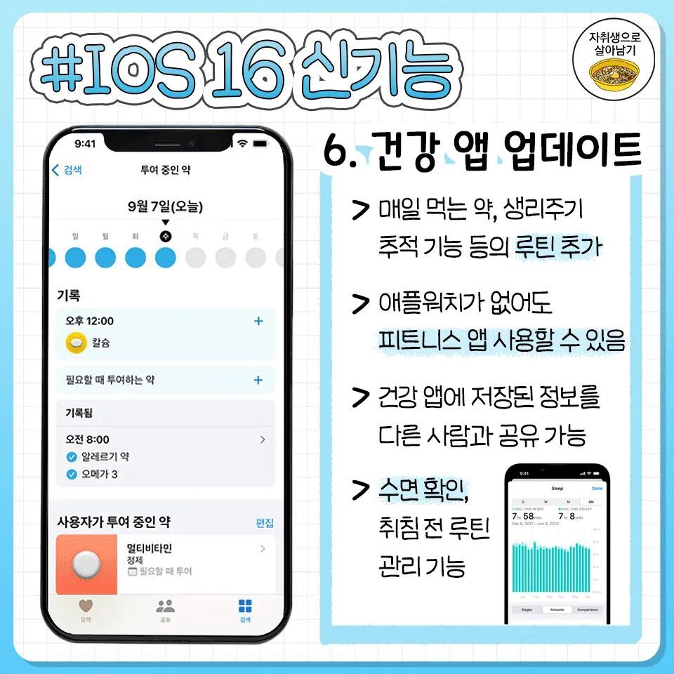 ※ 6. 건강 : 매일 먹는 약, 생리주기 추적 기능 등 루틴 추가, 애플워치 없이도 피트니스 앱 사용가능
