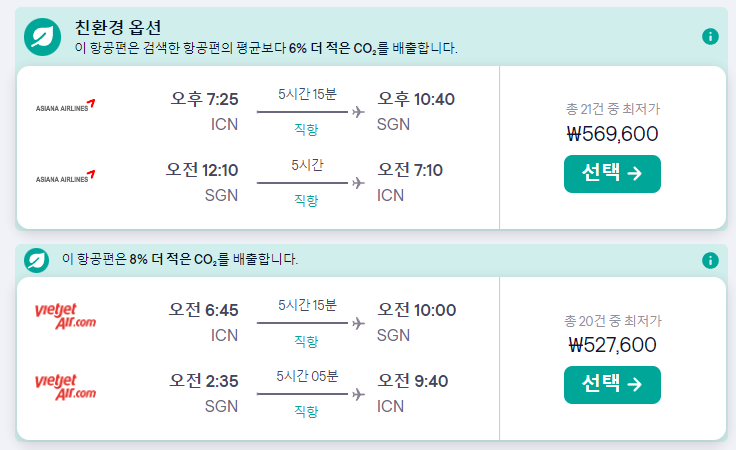 아시아나 항공 저녁출발 편은 57만원, 비엣젯 항공 새벽 출발편 52만원입니다.아시아나 항공의 경우 하루 2편이 뜨네요. 오전과 오후인데 공항에 조금더 일찍 도착할 수 있는 분들이라면 오전을 추천드리고 그렇지 않다면 저녁출발편이 좋을 것 같아요.