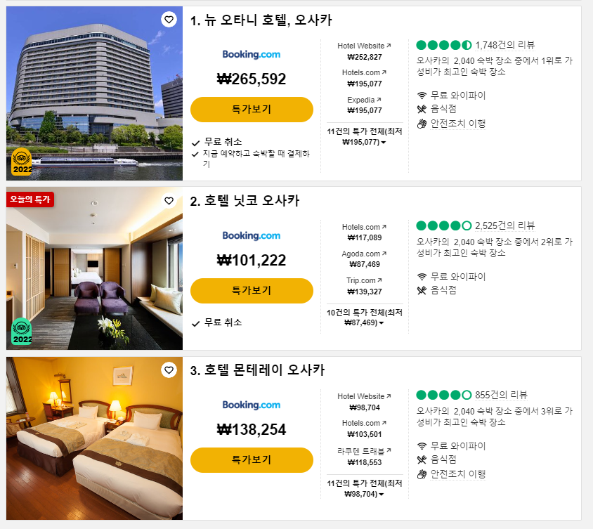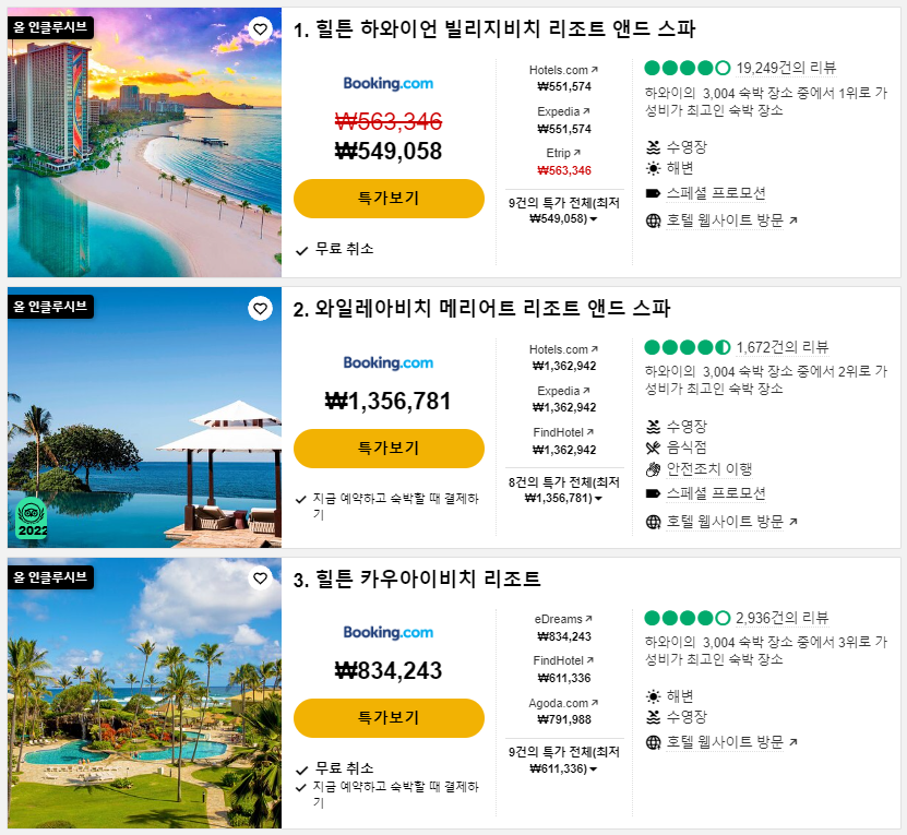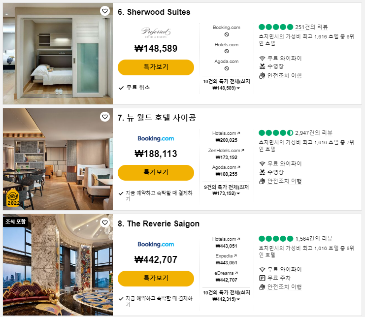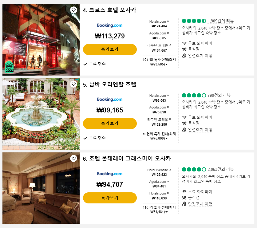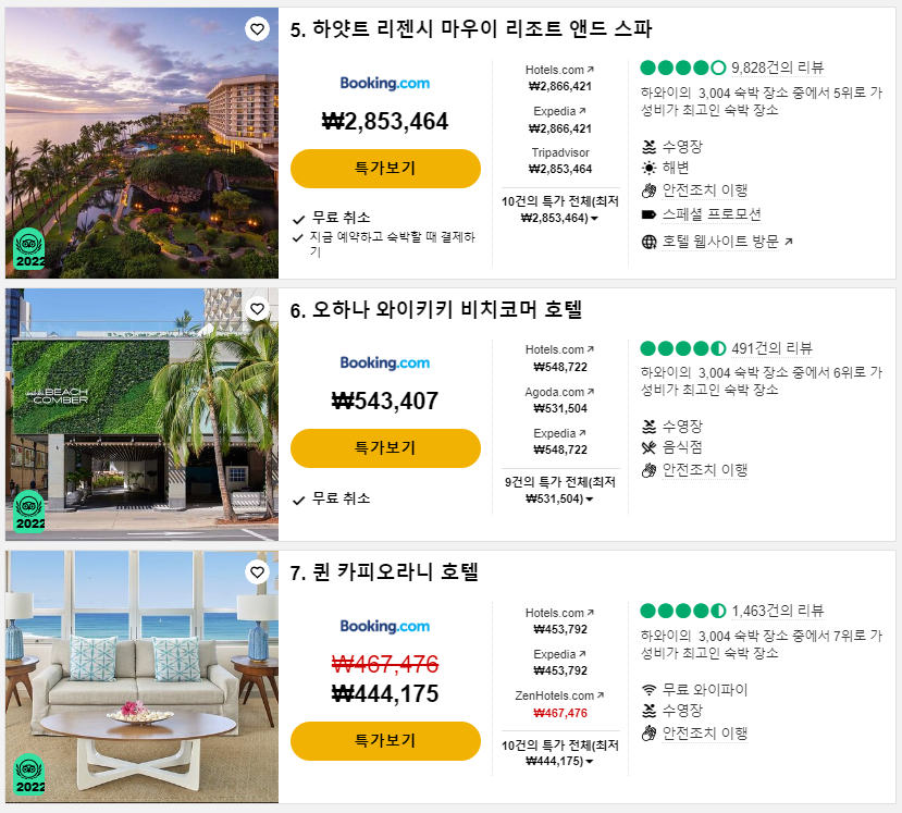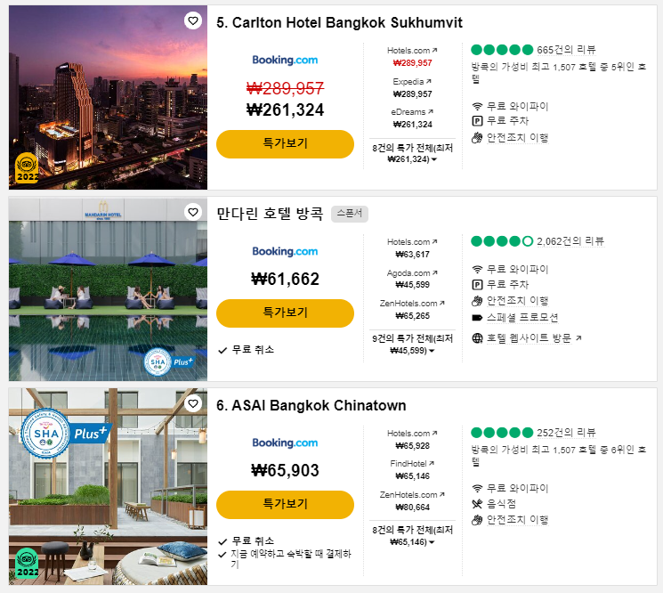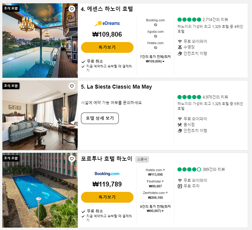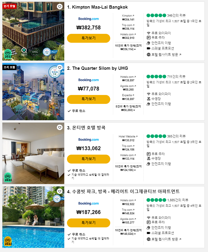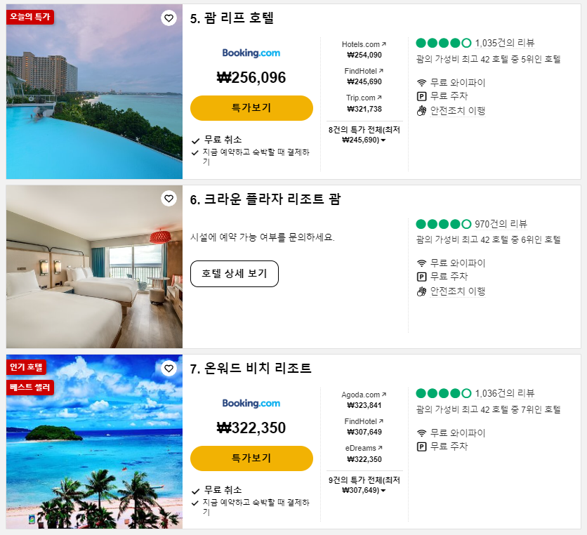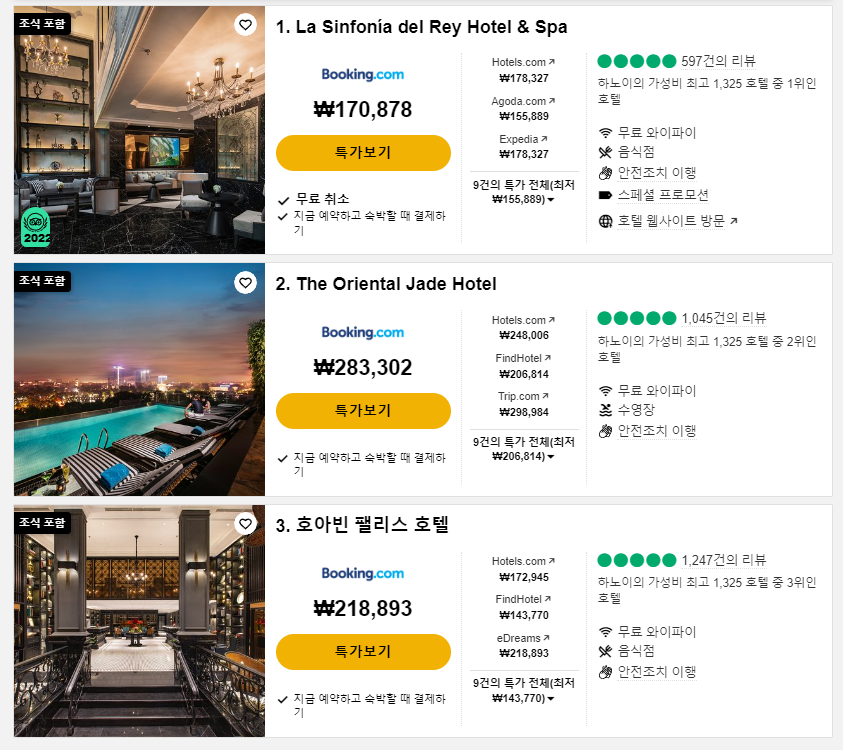 여행자 평가순으로 정렬하다보니 가격이 조금 비싼곳들이 나오네요.