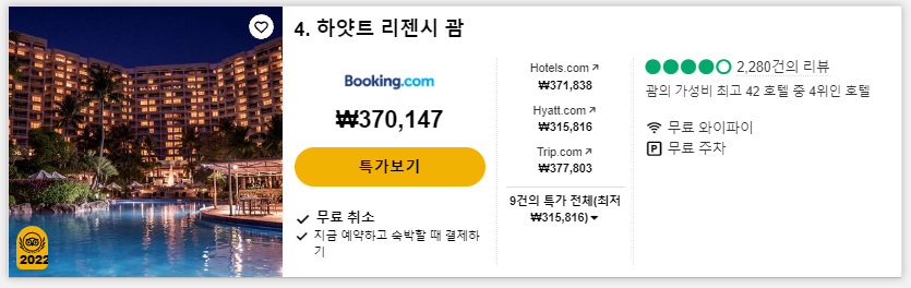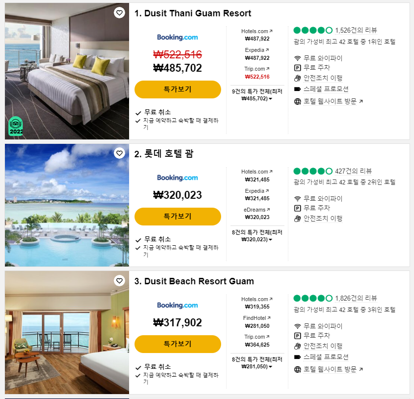 괌에는 호텔가격들이 30만원대에 많이 보입니다.