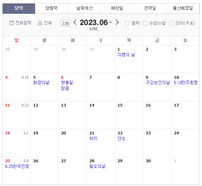 6월 6일 현충일이 화요일입니다.