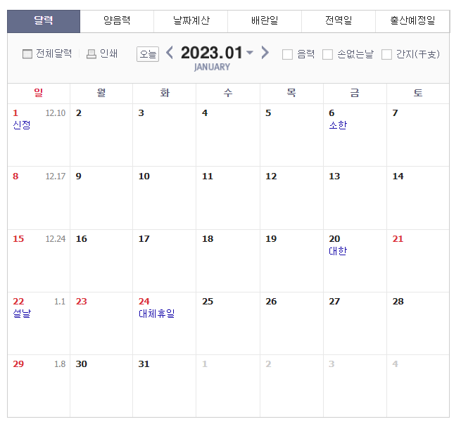 설날이 일요일이라 대체공휴일을 가지고 있습니다.