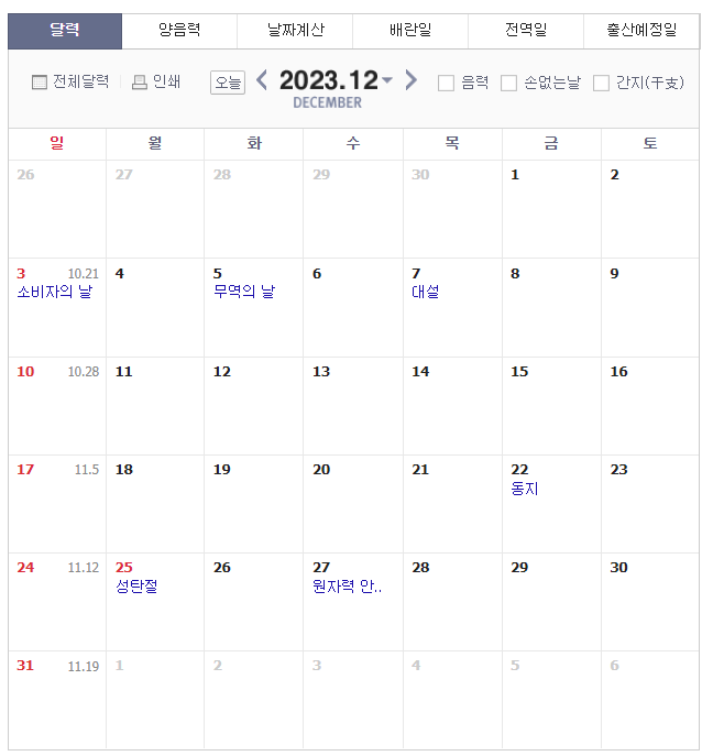 2023년 마지막 12월에 3일의 짧은 연휴를 즐길 수 있습니다.