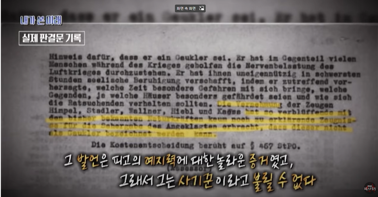 그렇게 그는 예지력을 인정받고 풀려나게 됩니다.