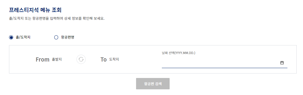 기내식 메뉴 조회 방법