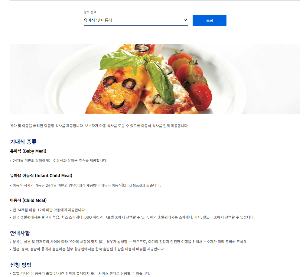 기내 특별식 신청방법