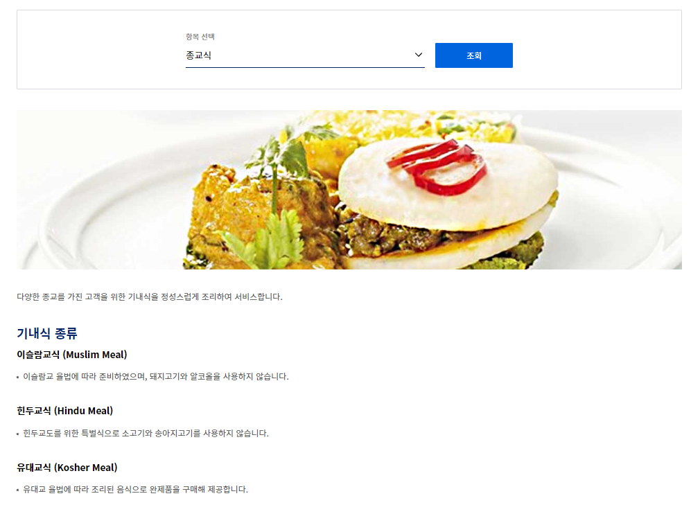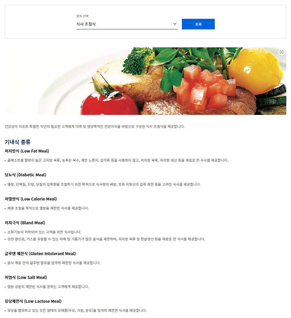 설명을 보게 되면 대한항공에서 제공하는 기내식에는