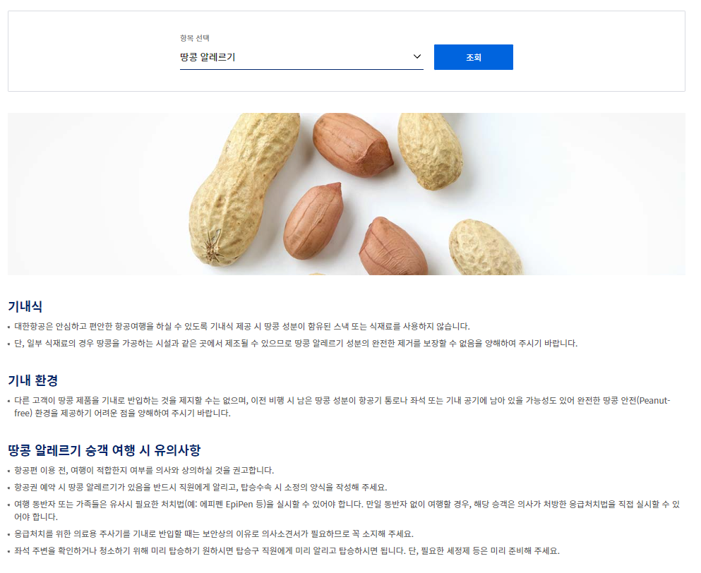 땅콩 성분이 함유된 스낵 또는 식재료를 사용하지 않는다고 하네요.