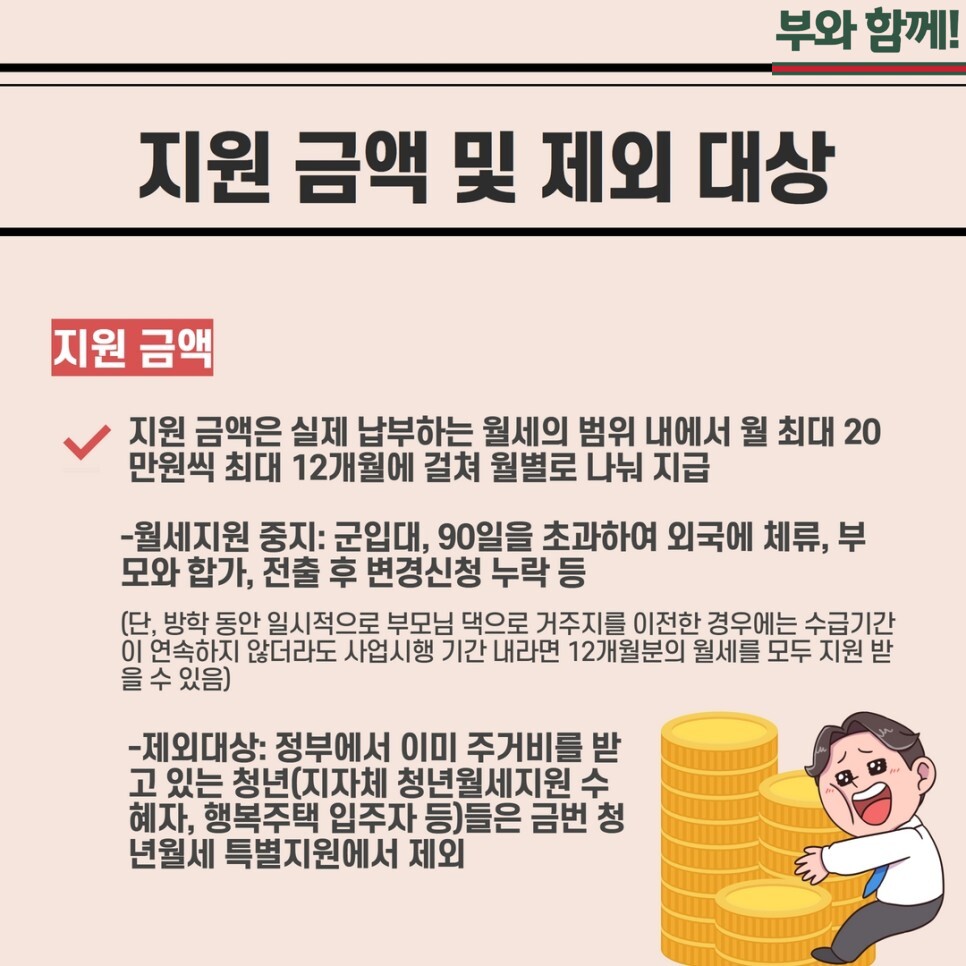 정부에서 청년들에게 월세를 지원해주는 제도가 있습니다.